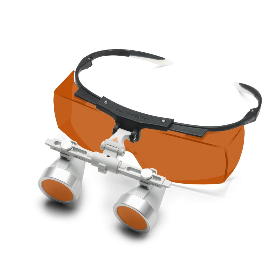 The powerful HEINE LoupeLight 2 is suitable for use with the HEINE HR and HRP binocular loupes. We use the HR binocular loupe in conjunction with the F27 laser safety glasses, which are available with all laser protection filters available for medicine. Optionally, the LED lamp can be folded up independently of the magnifying glass. In combination with the binocular loupe, the HEINE LoupeLight 2 delivers high image quality for precise diagnoses as well as absolutely homogeneous, bright light, optimal color rendering and shadow-free lighting in a clearly defined light cone. The precision lens system is securely protected from dust and dirt in an elegant aluminum jacket